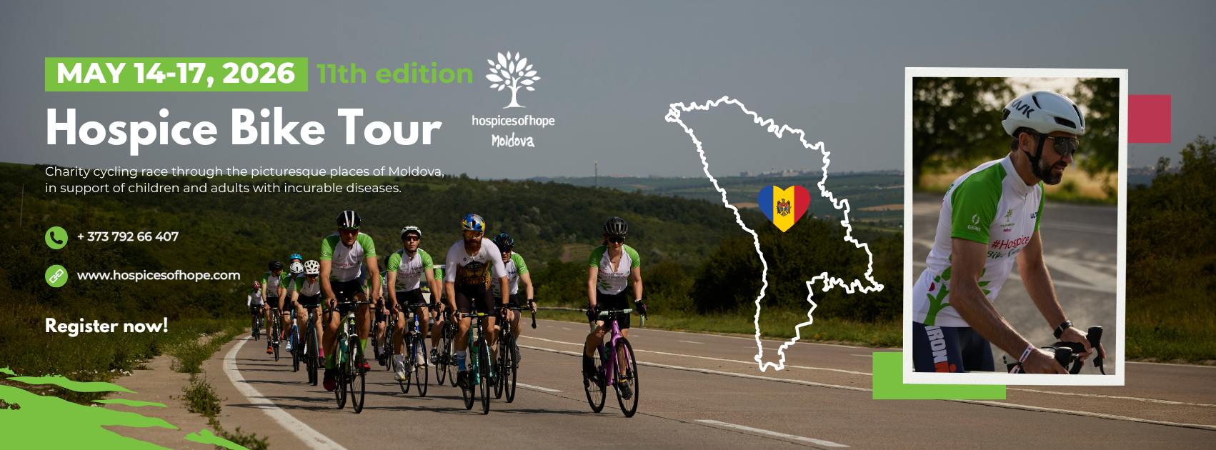 Hospice Bike Tour is more than just a cycling event. It is an experience that brings together brave people with big hearts who are willing to push their limits in order to help others. Be one of those who take on the challenge of cycling through Moldova’s scenic landscapes for a truly meaningful cause.