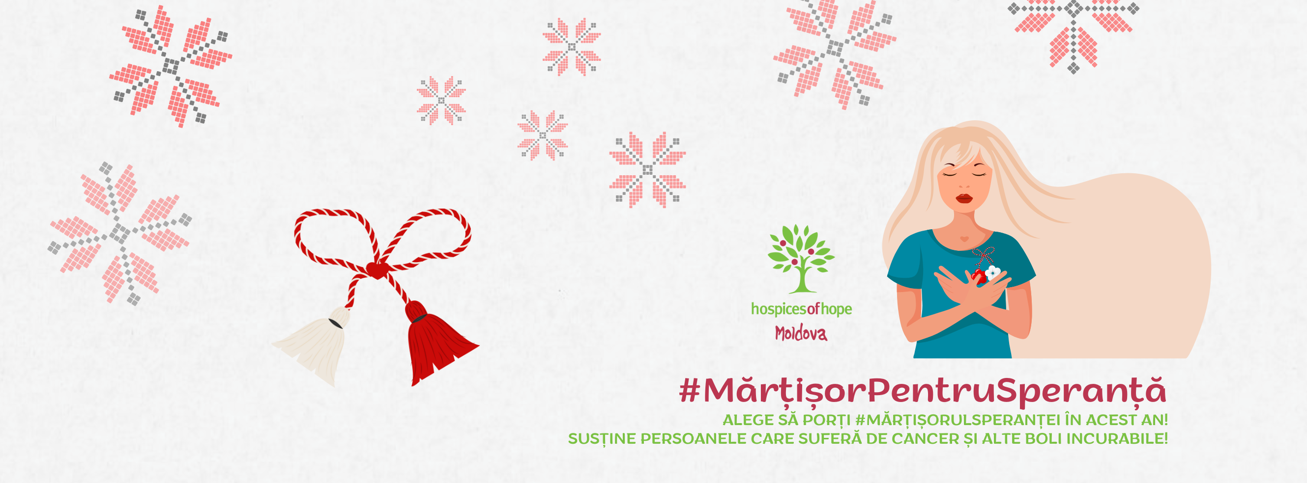 Ce-ar fi dacă ți-am spune că acum tu poți fi acel erou ce aduce speranța? Și o poți face atât de simplu - purtând în piept un mărțișor, #mărțișorulsperanței! An după an, Hospices of Hope unește tradiția cu misiunea de crea o comunitate mai blândă, pentru cei ce au nevoie de îngrijiri paliative. În ajunul primăverii, alături de beneficiarii și voluntarii noștri, confecționăm #mărțișoarelesperanței care simbolizează faptul că precum după iarnă vine primăvara, așa și în cele mai provocatoare momente apare speranța.